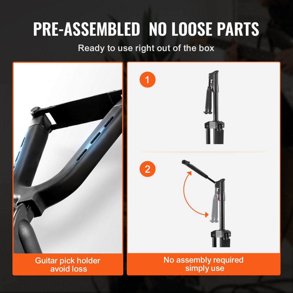No requiere ensamblaje: no se necesitan piezas de instalación: este soporte para guitarra completamente ensamblado está listo para usar nada más sacarlo de la caja. Diseñado con un práctico soporte para púas de guitarra y un acolchado de espuma de alta densidad en todos los puntos de contacto, garantiza que su guitarra permanezca libre de rayones. Experimente un diseño reflexivo y fácil de usar en cada detalle.