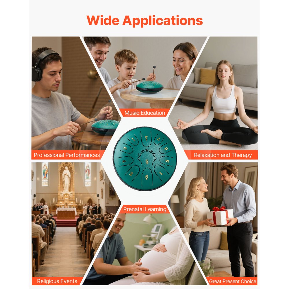 Fácil de tocar: No se necesitan teoría musical ni experiencia tocando. Al tocarlo con baquetas o con las manos, este tambor manual para exteriores produce un sonido penetrante y un tono etéreo único. Incluye un libro de partituras, ideal para que niños y principiantes disfruten de la música
