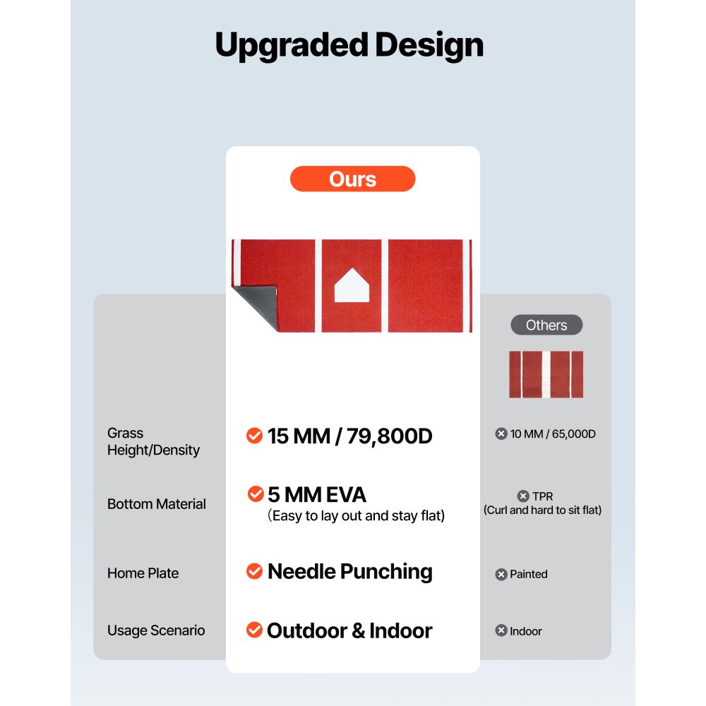 Tapete de Bateo para Béisbol 300 x 116 cm Tapete de Lanzamiento de Sóftbol, Césped Sintético PP, Base de EVA, Alfombrilla de Entrenamiento de Béisbol para Interiores y Exteriores, Rojo - Deporte y recreación