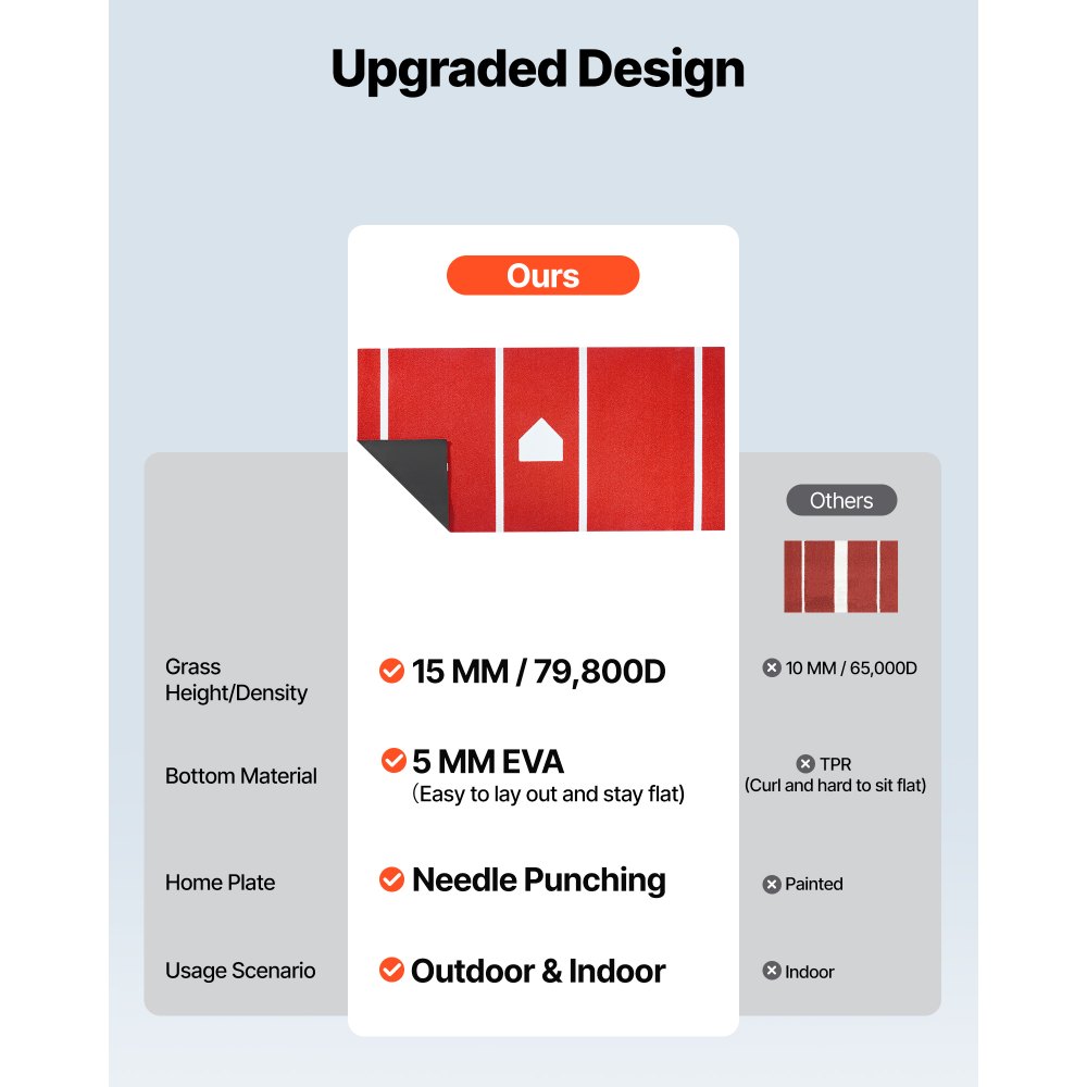 Base antideslizante: Diseñada con un reverso de EVA de 5 mm, esta alfombrilla de bateo de béisbol mejora la fricción para evitar resbalones y reducir el riesgo de caídas. Además, protege el suelo de arañazos y daños durante el entrenamiento