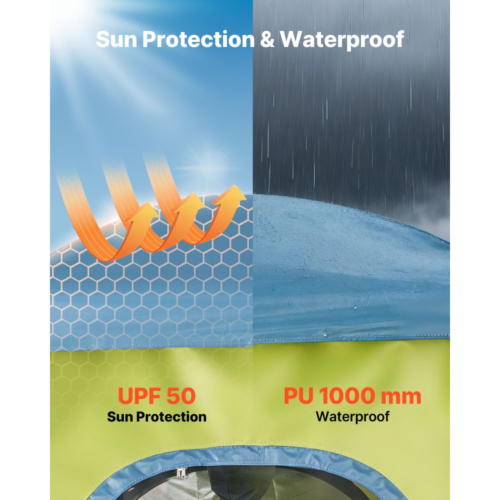 Protección solar e impermeabilidad: Nuestra carpa de ducha está fabricada con resistente tela Oxford 150D con FPS 50 y protege eficazmente contra la luz solar intensa. Las ventanas laterales mejoran la circulación del aire. Gracias a su columna de agua de 2000 mm, la lluvia se dispersa rápidamente y mantiene el interior de la carpa seco