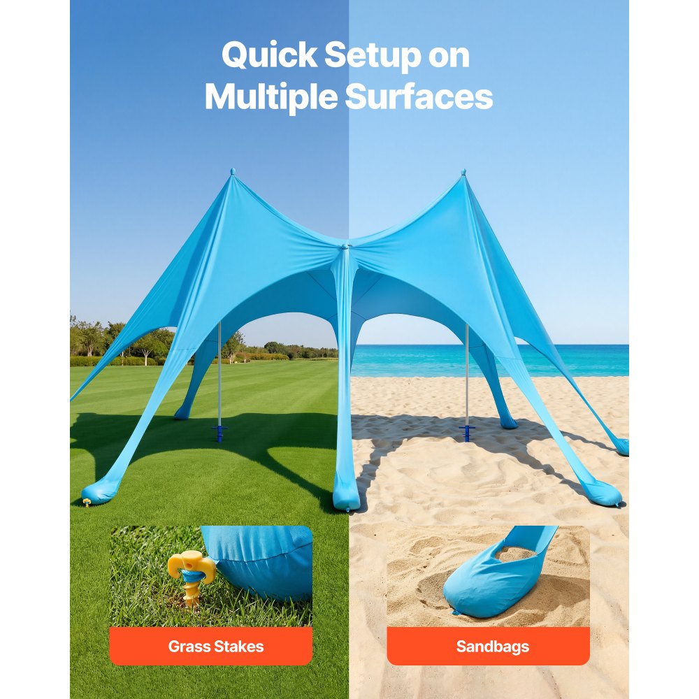 Diseñado para todo tipo de terrenos: Con anclaje de sacos de arena y de estacas, este refugio solar para playa se fija de forma segura en arena, césped y más. Recoloque fácilmente los sacos de arena o las estacas para ajustar el ángulo de la sombra según la posición del sol