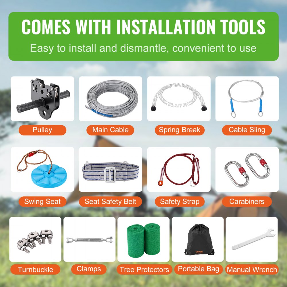 Configuración rápida: las herramientas incluidas, como una llave, facilitan la instalación y el desmontaje de la tirolesa, lo que hace que el proceso sea sencillo. El funcionamiento es sencillo y permite a los padres realizar actividades con sus hijos, fomentando sus capacidades físicas y creando momentos perfectos entre padres e hijos.