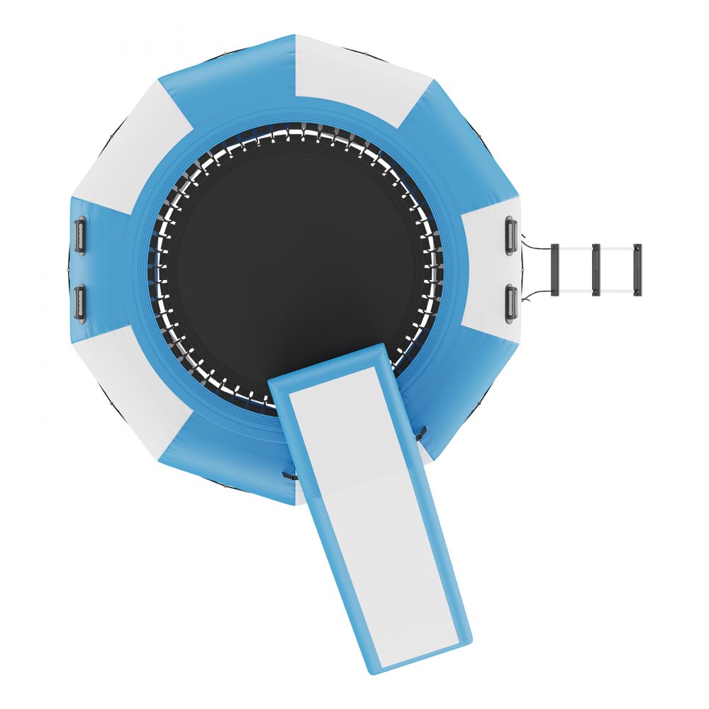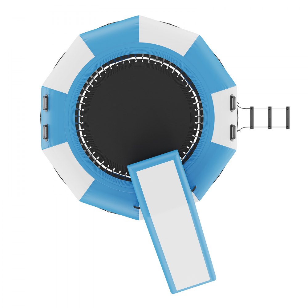 Fácil instalación: El trampolín viene con accesorios completos. Las bolsas de anclaje incluidas y los 304 bucles de anclaje metálicos ayudan a mantenerlo en su lugar. El trampolín flotante se puede colocar sobre cualquier superficie de agua, como lagos, océanos, piscinas, etc. Tenga cuidado de evitar objetos afilados.