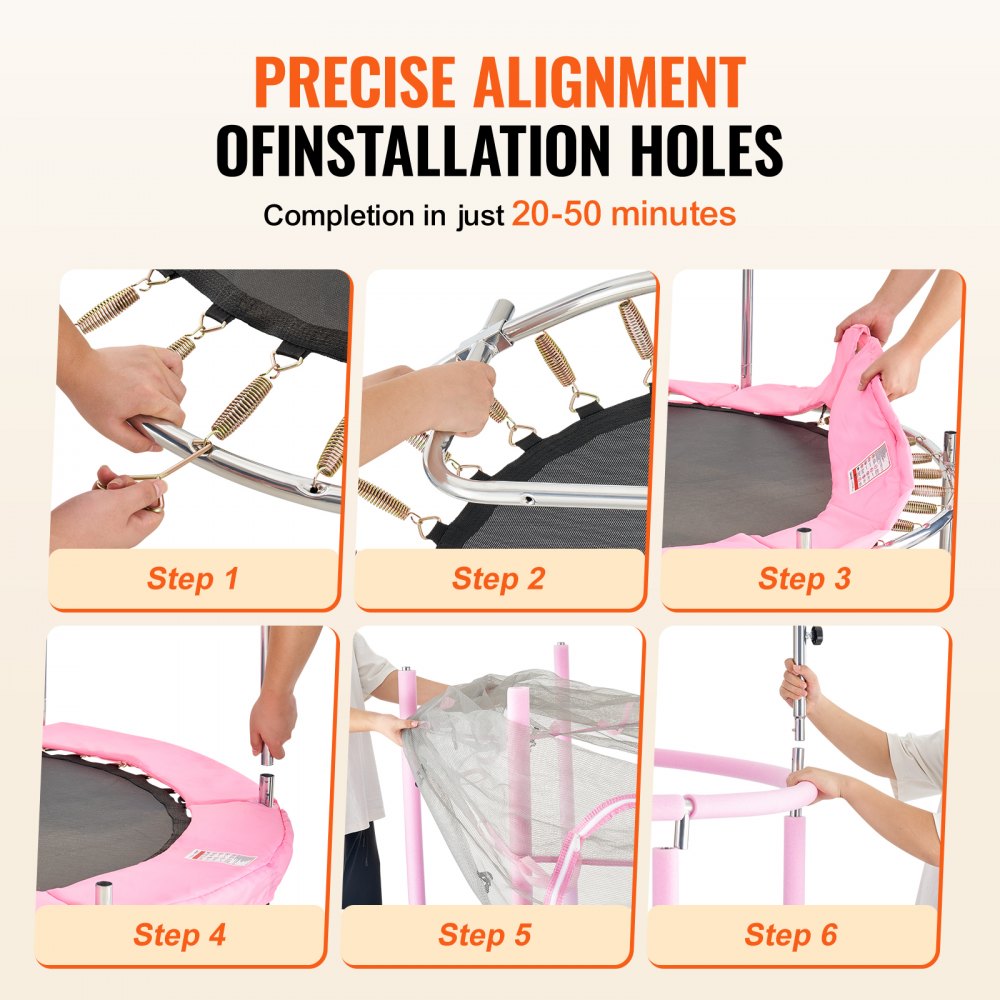 Lona de salto mejorada: La lona de salto está integrada con una falda de seguridad, que presenta un diseño robusto para una mayor protección. Con 36 resortes que soportan un peso máximo de 120 kg(265 lbs), nuestro trampolín de ejercicio para niños garantiza la seguridad durante cada salto. Seis postes de seguridad, una red de protección de 360° y una cremallera en forma de U brindan protección integral para su hijo.