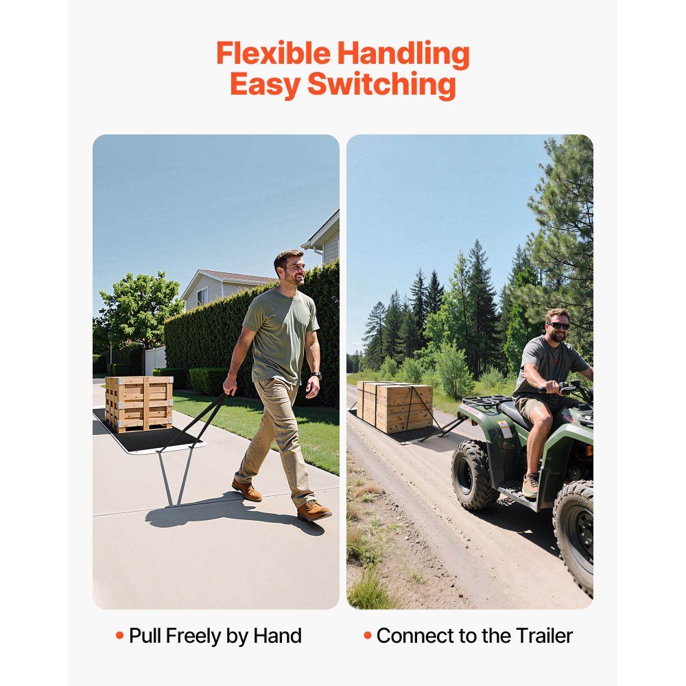 Capacidad de carga de alta resistencia: El trineo de arrastre soporta fácilmente hasta 725,75 kg, ideal para transportar objetos pesados como madera, piedras y muebles. Reduce los viajes múltiples, ahorra tiempo y hace que el transporte sea más eficiente, satisfaciendo todas las necesidades de transporte de alta resistencia