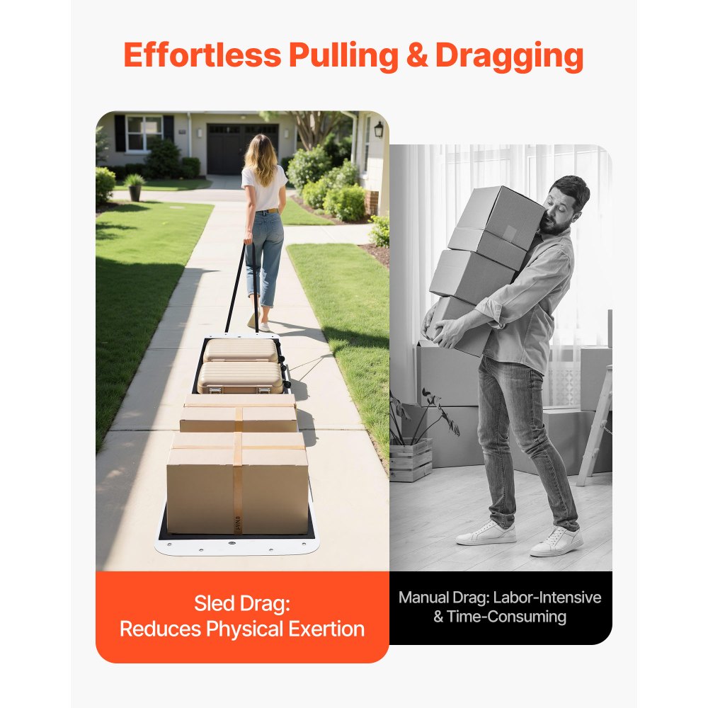 Remolque sin esfuerzo: Equipado con dos correas de cincha de alta resistencia, el trineo utilitario ofrece una gran potencia de tracción, lo que garantiza un movimiento fácil de artículos pesados sin esfuerzo, ahorrando tiempo y energía durante el transporte