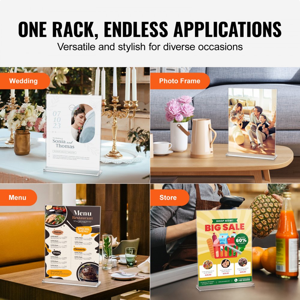 6 PCS Soporte de Acrílico para Carteles Soportes de Exhibición de Folletos de 223,52 x 279,4 mm de Doble Cara en Forma de T, Soporte de Papel Fotográfico para Restaurante, Oficina, Boda, Bar - Equipos de almacenamiento y manipulación