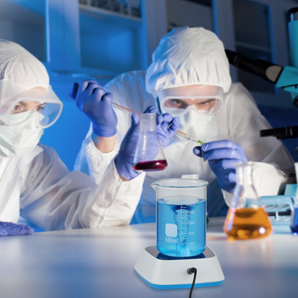 Alta estabilidad: esta placa agitadora magnética cuenta con un fuerte núcleo magnético que evita que la barra agitadora se salte, incluso en su capacidad total de 3000 ml. Recordatorio amistoso: utilice la barra agitadora incluida para mezclar soluciones en vasos de vidrio.
