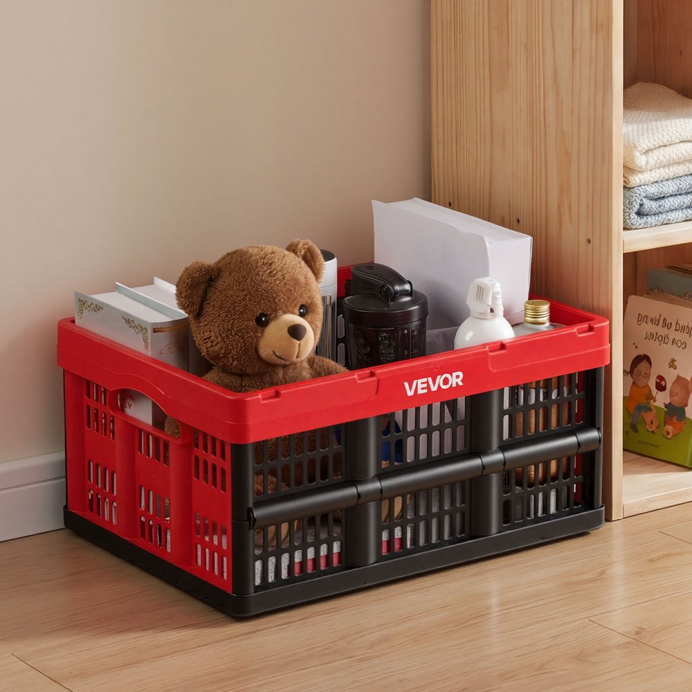 Cajas de Almacenaje Plegables de Plástico 32 L, 3 Unidades, Contenedores de Almacenaje sin Tapa, con Asas, Ahorra Espacio, Soporta 12 kg para Camping Organización Coche Hogar, Color Rojo y Negro - Equipos de almacenamiento y manipulación