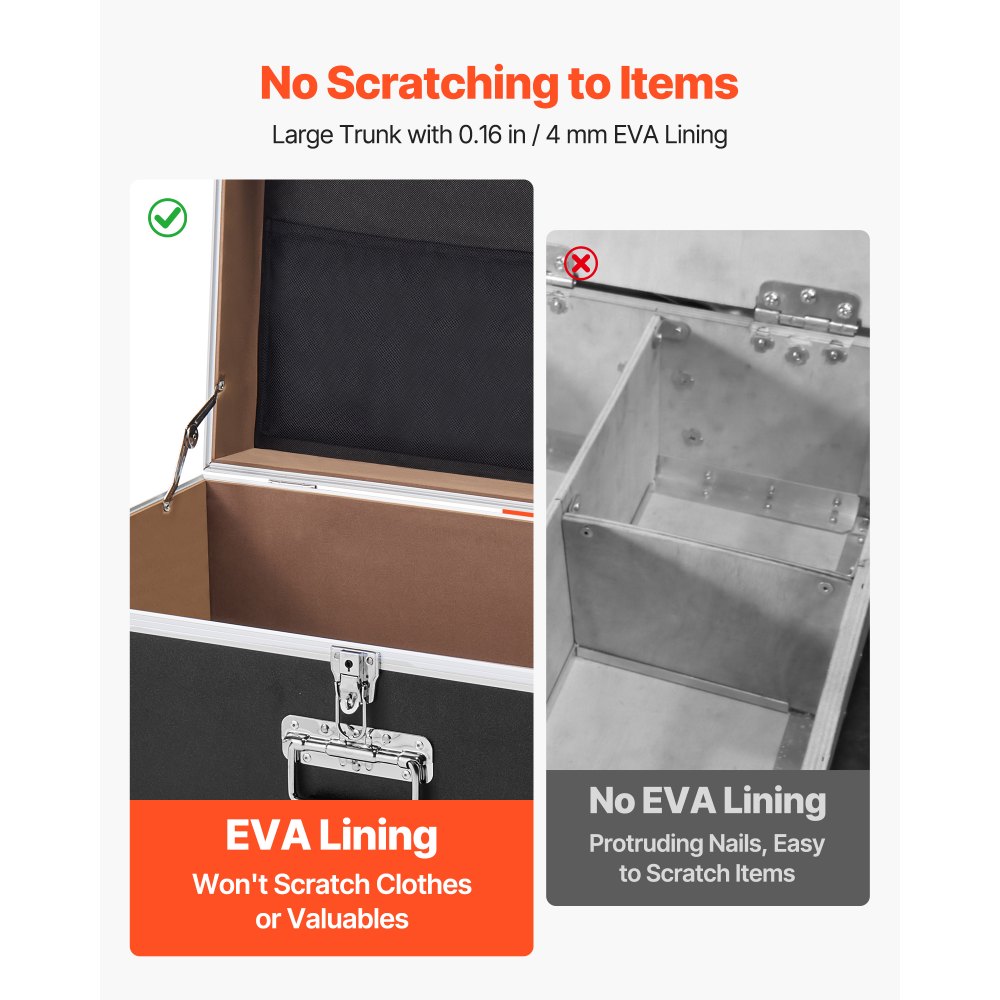 Revestimiento interior de EVA acolchado: La caja grande incluye un revestimiento de EVA de 4 mm (0,16 pulgada), que proporciona soporte acolchado y mantiene la ropa y los objetos de valor en mejores condiciones durante el almacenamiento