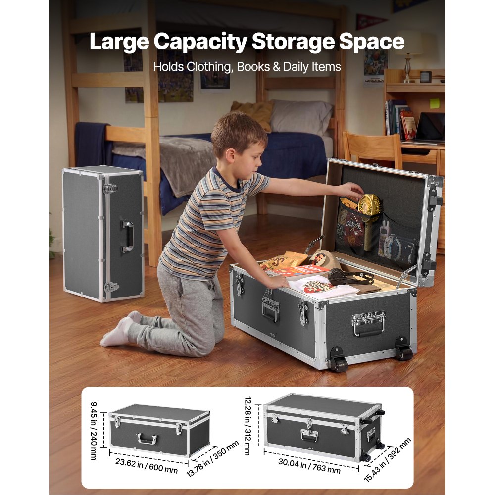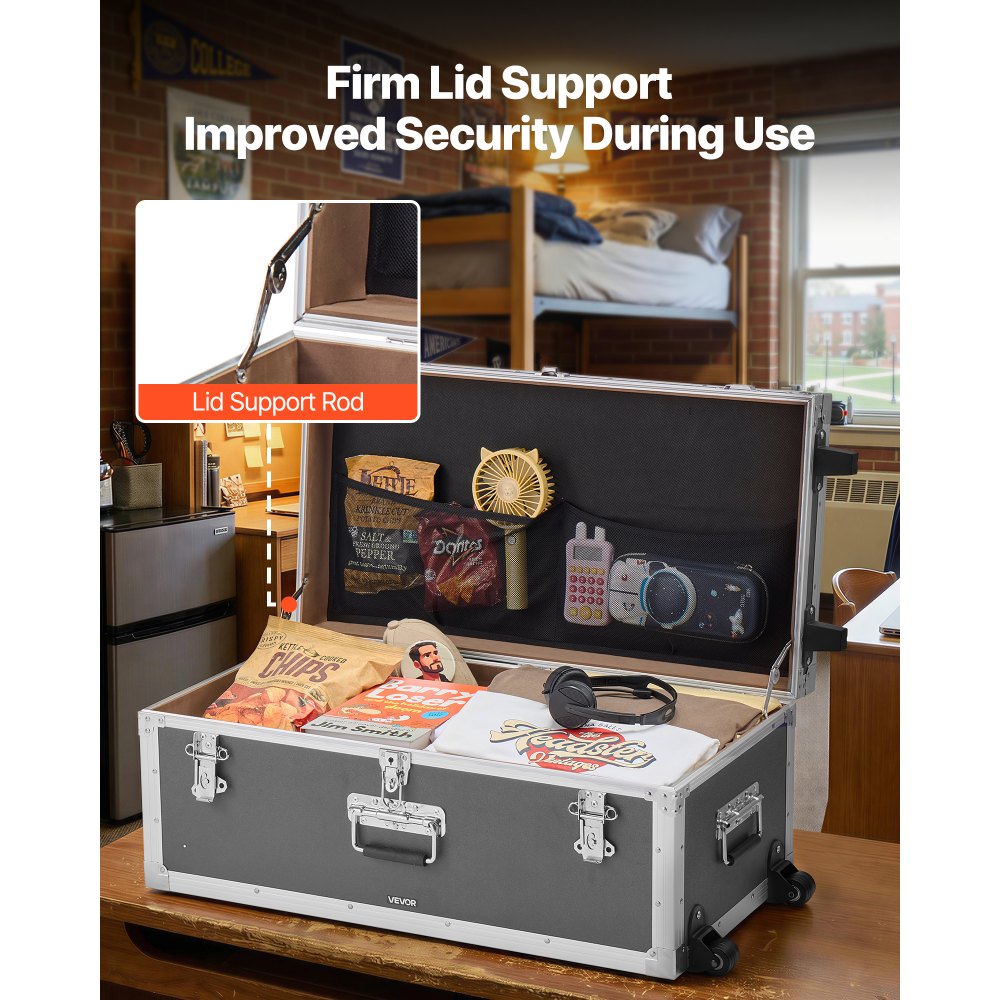 Almacenamiento seguro para objetos de valor: El baúl grande incluye un candado de combinación para almacenar objetos de valor y artículos personales en dormitorios compartidos; el pequeño está equipado un candado de pestillo estándar para artículos de uso diario