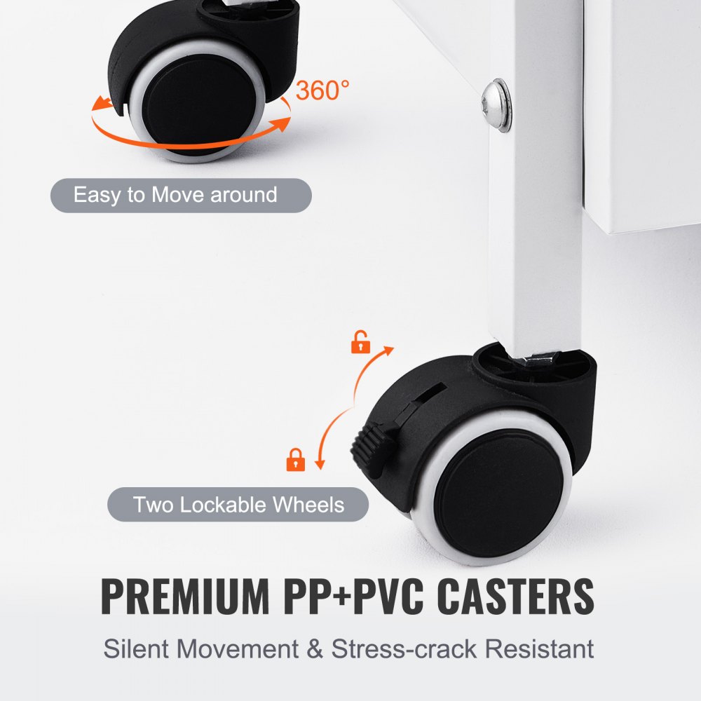 Ruedas giratorias de 360°: el carro utilitario de laboratorio tiene cuatro ruedas súper silenciosas que giran 360° para transportar equipos entre el laboratorio, y los dos dispositivos de frenado funcionan de manera segura cuando frenas repentinamente.