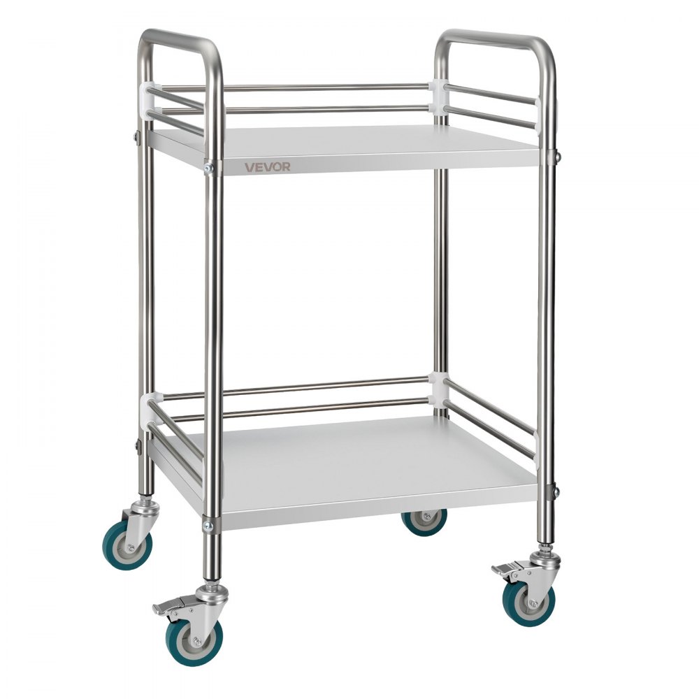 Carro de Laboratorio de Acero Inoxidable 2 Niveles con Ruedas Bloqueables, Bandeja de Almacenamiento Móvil Resistente para Hospitales, Restaurantes, Cocinas, Salones, 515 x 410 x 870 mm - Equipos de almacenamiento y manipulación