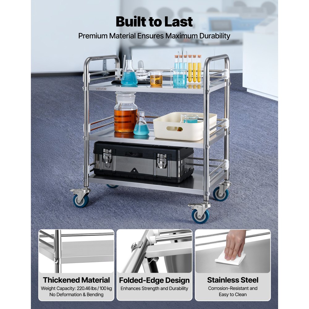 Estabilidad mejorada: Diseñado para una fiabilidad duradera, nuestro carro de laboratorio cuenta con juntas reforzadas con conectores de acero de alta resistencia para mayor estabilidad. Puede cargarlo con confianza: sin vibraciones ni tambaleo, solo con un soporte firme para sus herramientas y suministros
