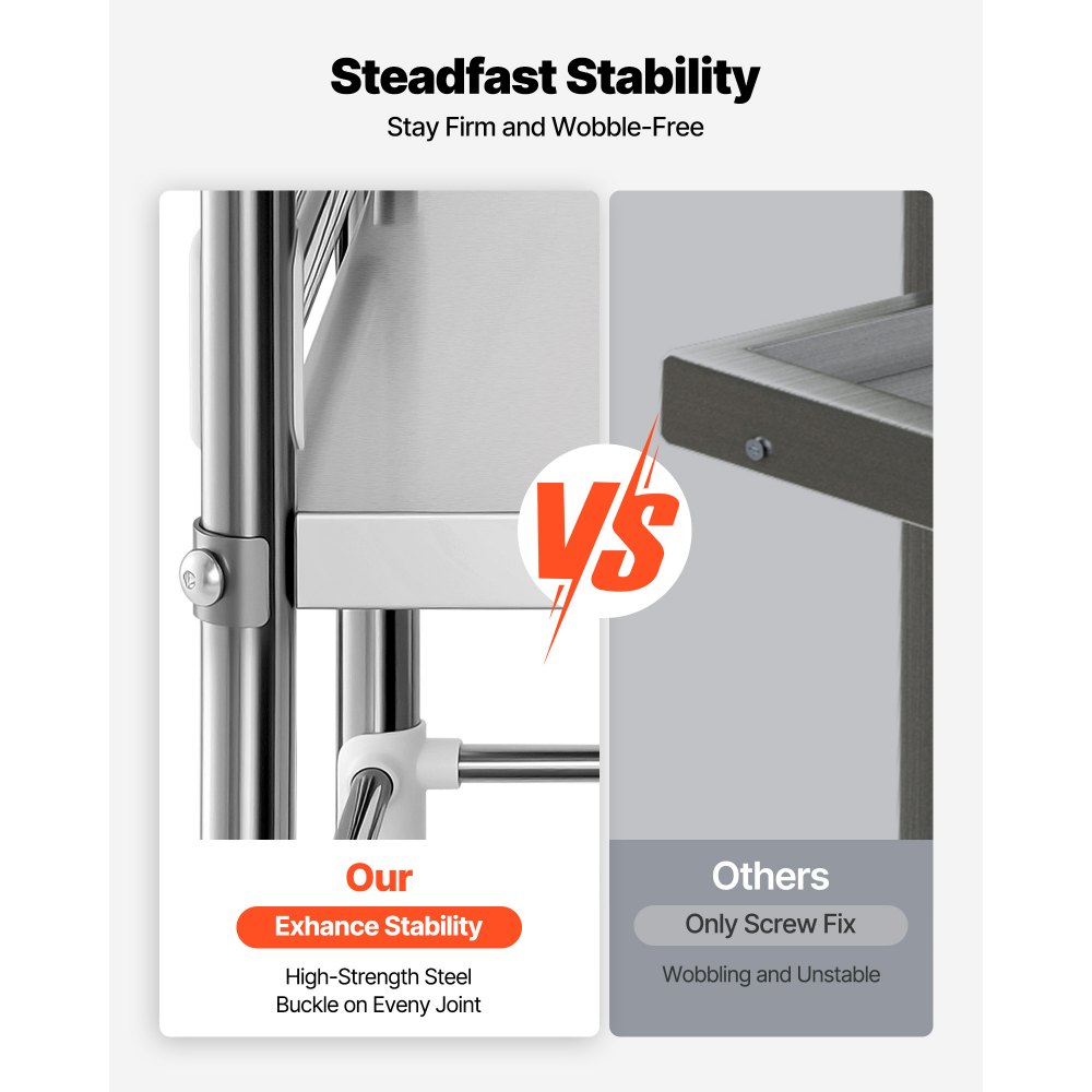 Acero inoxidable sólido: Fabricado en acero inoxidable, este carrito multiusos ofrece una gran resistencia y durabilidad. Soporta hasta 100 kg sin doblarse ni deformarse. Su suave acabado inoxidable facilita la limpieza y mantiene su espacio de trabajo impecable