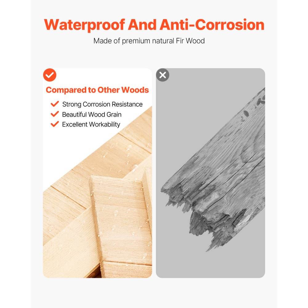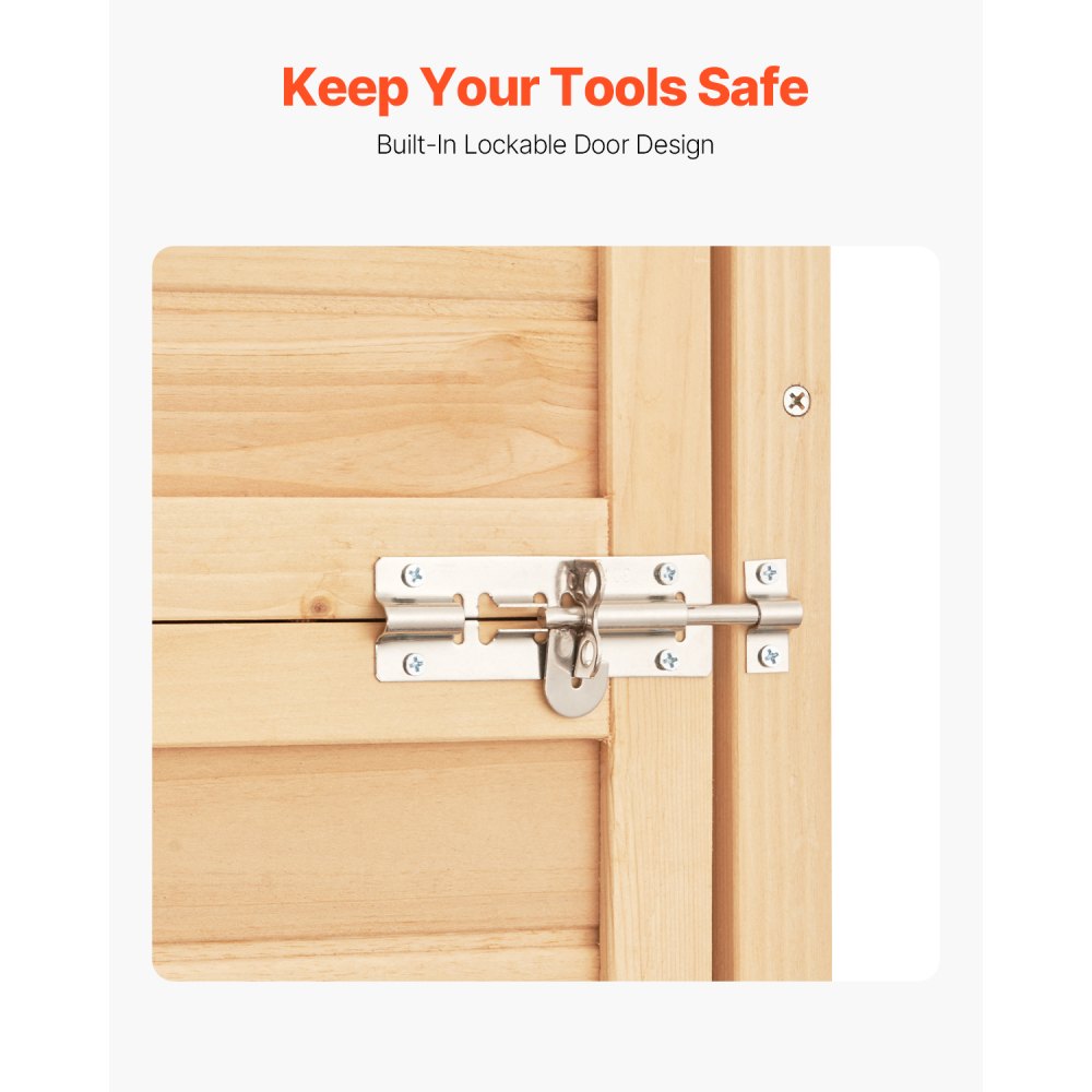 Estructura resistente: Este cobertizo de almacenamiento para exteriores está fabricado con madera de cedro natural de alta calidad y tratado para una excelente impermeabilidad y resistencia a la corrosión. El diseño antivuelco bien pensado evita que el gabinete se vuelque, lo que garantiza que pueda soportar diversas condiciones climáticas para un uso a largo plazo.