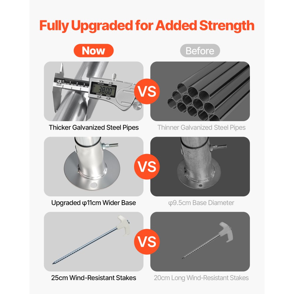 Estructura metálica resistente: Este gran cobertizo de almacenamiento portátil está construido con tubos de acero galvanizado de 38 mm de diámetro y hasta 0,7 mm de espesor. Esto lo hace resistente a grietas, descascarillado, oxidación y corrosión, garantizando estabilidad y seguridad incluso en condiciones climáticas adversas