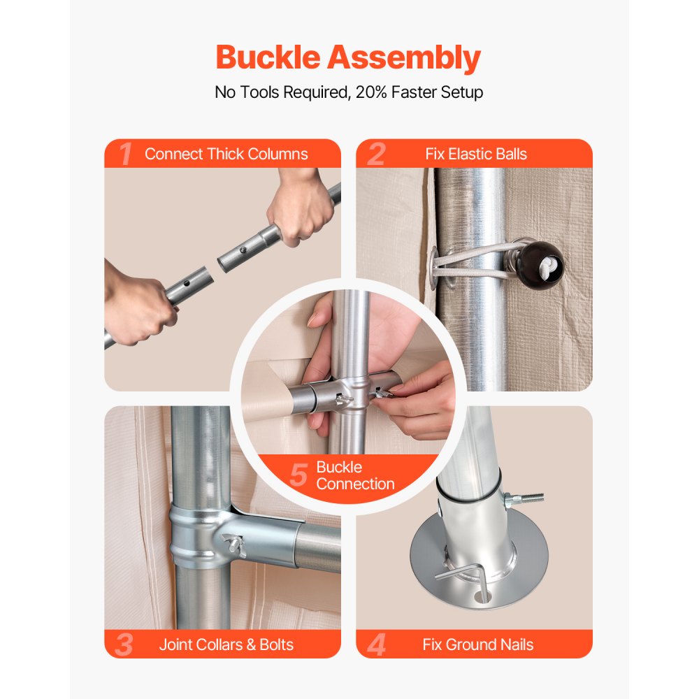 Fácil montaje con hebillas: Este refugio portátil para exteriores se ensambla rápida y fácilmente mediante conectores con hebillas, uniones en T y en cruz, sin necesidad de herramientas. Gracias a sus detalladas instrucciones de montaje, garantiza una conexión rápida y sencilla