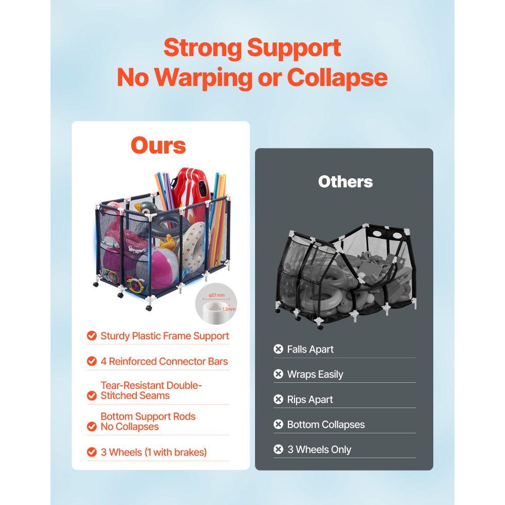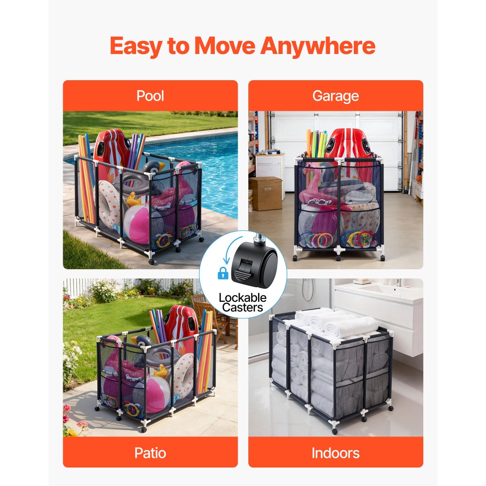 Uso múltiple: Este contenedor para flotadores de piscina es ideal para piscinas de jardín, centros de actividades acuáticas, almacenes, juguetes infantiles, ropa ordenada y la lavandería. Olvídate del desorden y disfruta de un espacio más limpio y ordenado