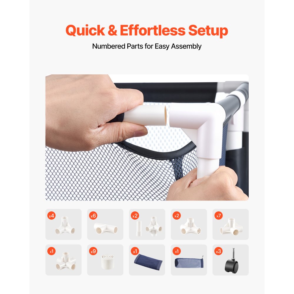Fácil de instalar: No requiere taladros ni herramientas. Simplemente conecta los tubos y fija la malla. El almacenamiento para flotadores de piscina se desmonta fácilmente para un almacenamiento compacto en interiores o exteriores cuando no se usa