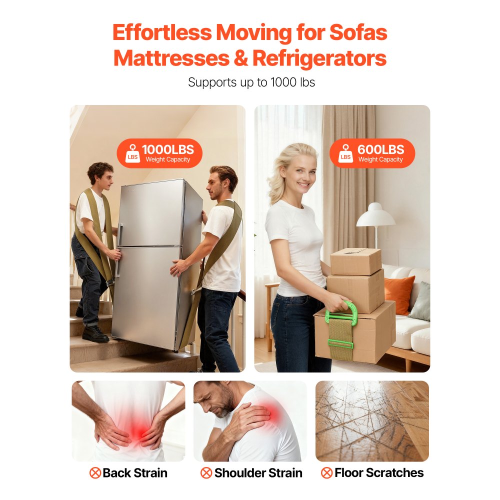 Alta capacidad de carga: Esta correa para transporte de muebles ofrece una capacidad de carga máxima de 453,6 kg y una correa de mano de 272 kg. Con una cuerda de polipropileno, una correa de mano y cierres de acero Q235, es resistente a la tracción, al desgaste y estable, ideal para mudanzas