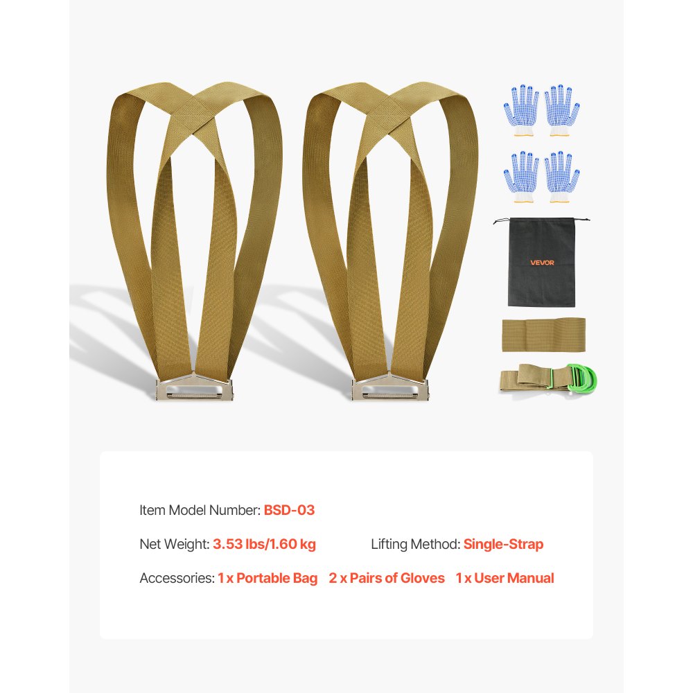 Correas de Transporte Ajustables, Sistema de Elevación y Transporte para 2 Personas con 2 Correas, 1 de Transporte y 1 de Mano, para Muebles, Electrodomésticos y Colchones, Cinturón Simple - Equipos de almacenamiento y manipulación