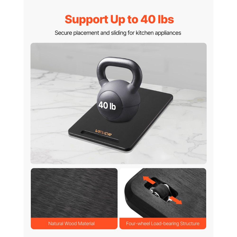Deslizador para Electrodomésticos 356 x 241 x 21 mm Bandeja Deslizante de Madera Grosor de 1,8 cm con Ruedas de Goma Silenciosas y Asa Hueca ideal para Cafeteras y Encimeras de Cocina, Negro - Equipos de almacenamiento y manipulación