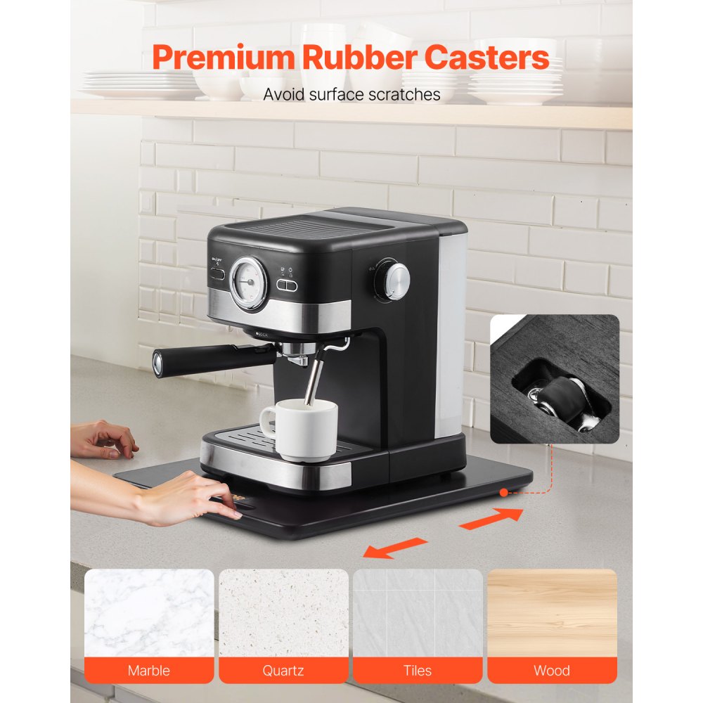 Deslizador para Electrodomésticos 406 x 305 x 21 mm Bandeja Deslizante de Madera Grosor de 1,8 cm con Ruedas de Goma Silenciosas y Asa Hueca ideal para Cafeteras y Encimeras de Cocina, Negro - Equipos de almacenamiento y manipulación