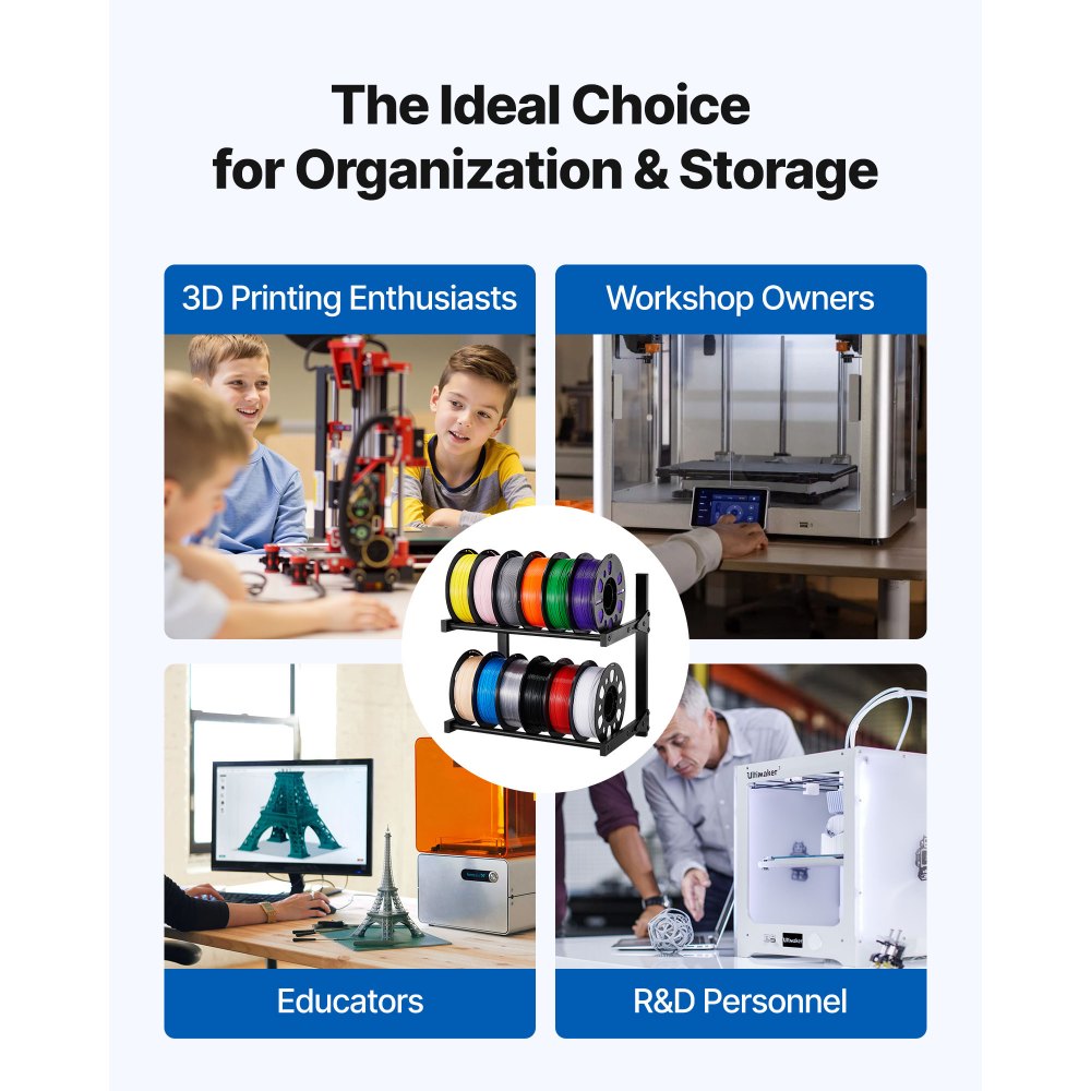 Amplia compatibilidad: Ideal para entusiastas de la impresión 3D, propietarios de talleres o educadores, este estante de filamento ayuda a organizar sus herramientas y materiales, lo que aumenta la eficiencia en el trabajo o el estudio