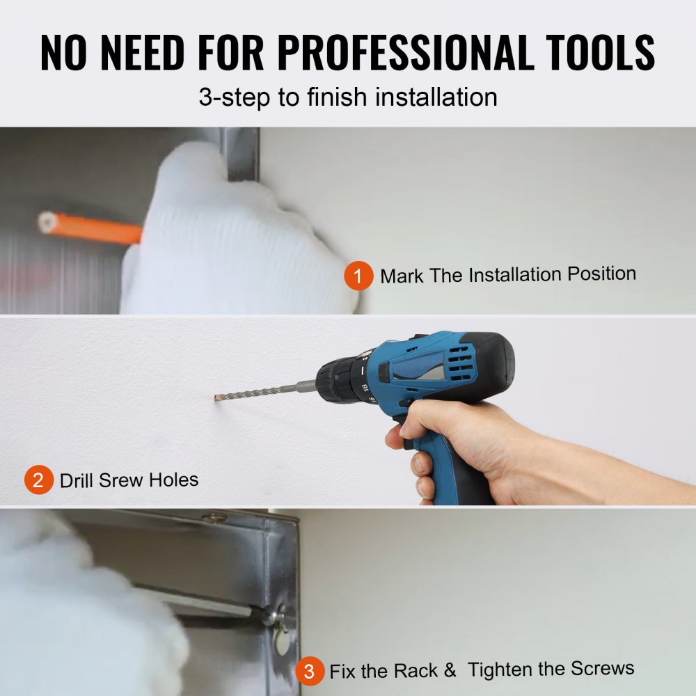 Instalación sin complicaciones: Nuestra estantería flotante de montaje en pared comercial viene con accesorios completos para un montaje que ahorra mano de obra. Solo necesita 3 pasos para obtener un estante espacioso sin problemas.