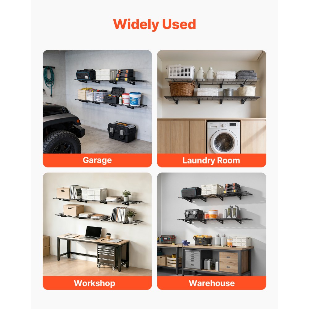 Almacenamiento para múltiples espacios: Estas estanterías de pared para garaje son ideales para garajes, lavanderías, talleres, almacenes o cocinas. Mantienen los artículos organizados y liberan valioso espacio
