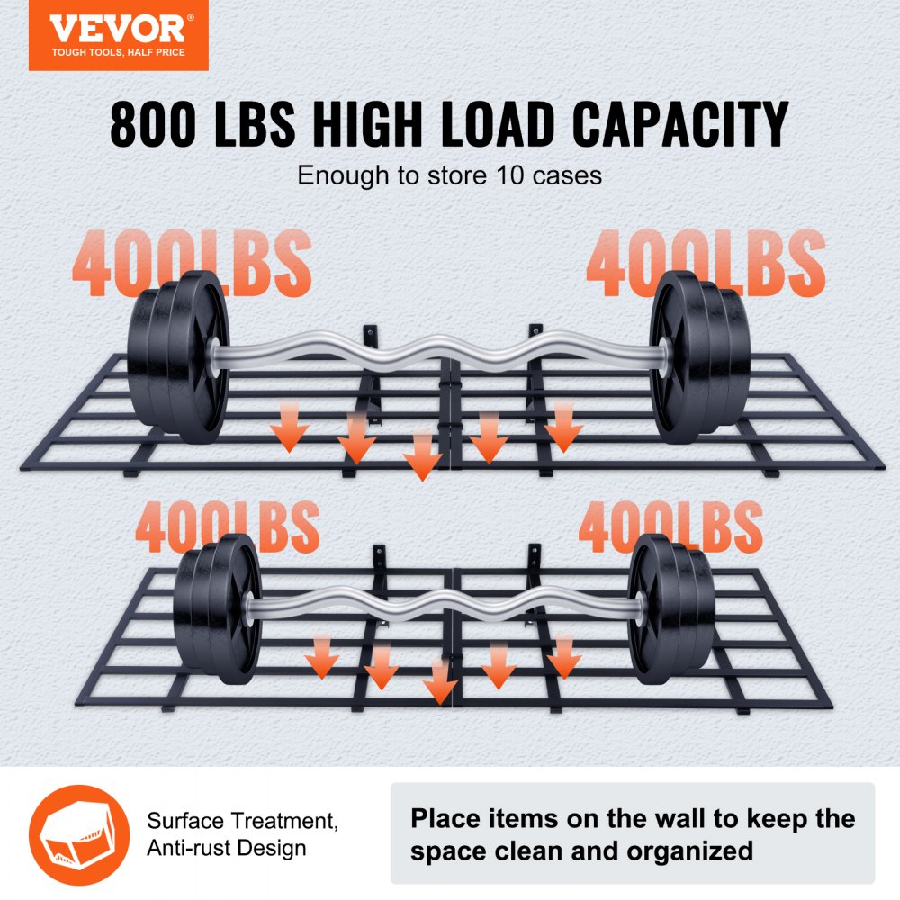Alta capacidad de carga de 800 libras: nuestros estantes de pared para garaje están hechos de metal de alta calidad y pesan 40 libras. Cada estante tiene una capacidad de carga máxima de 800 libras, lo que lo hace conveniente para colgar herramientas. Distancia entre orificios de instalación: 18 pulg./457 mm.