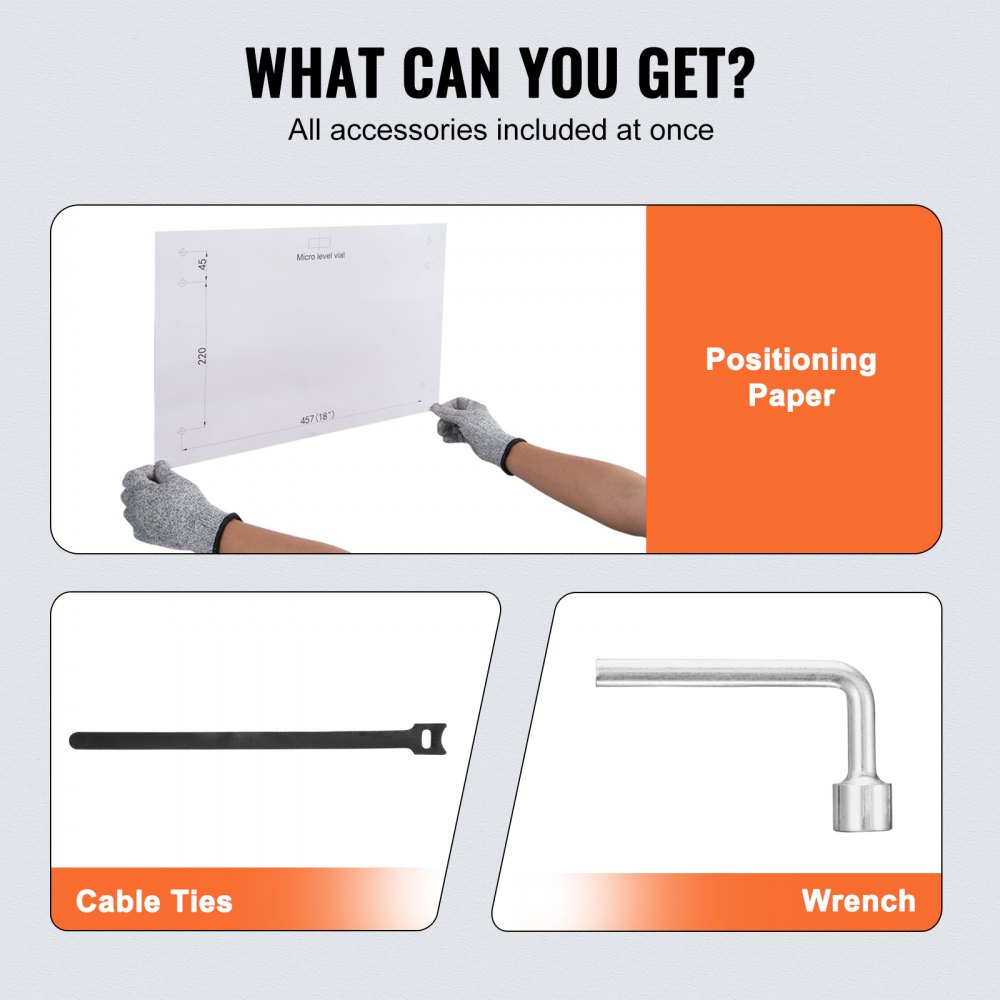 Todo lo que necesitas: el paquete incluye papel de posicionamiento, bridas para cables, etc. Este estante de pared para garaje de alta resistencia es adecuado para su instalación en paredes de hormigón o madera. Si se trata de una pared con vigas, verifique la distancia del orificio y no es adecuado para la instalación en paredes metálicas.
