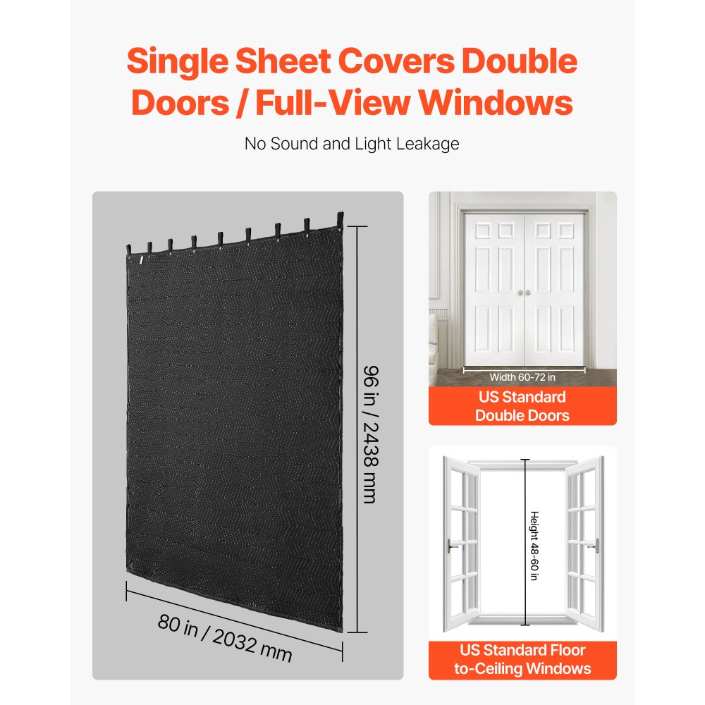 Manta de Amortiguación de Sonido con Ojales para Estudio 2438x2032 mm Manta Aislante Acústica Grande Tejido de Poliéster Manta de Absorción Acústica para Bloquear Ruido Ligero, Proteger Muebles