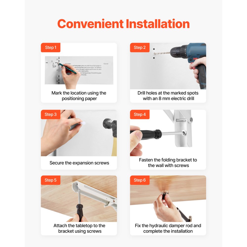 Fácil instalación: instalar nuestra mesa plegable de montaje en pared es muy sencillo con el papel de posicionamiento de instalación incluido. Las posiciones de instalación premarcadas en la plantilla permiten perforar agujeros rápidamente, lo que garantiza un proceso de instalación conveniente.