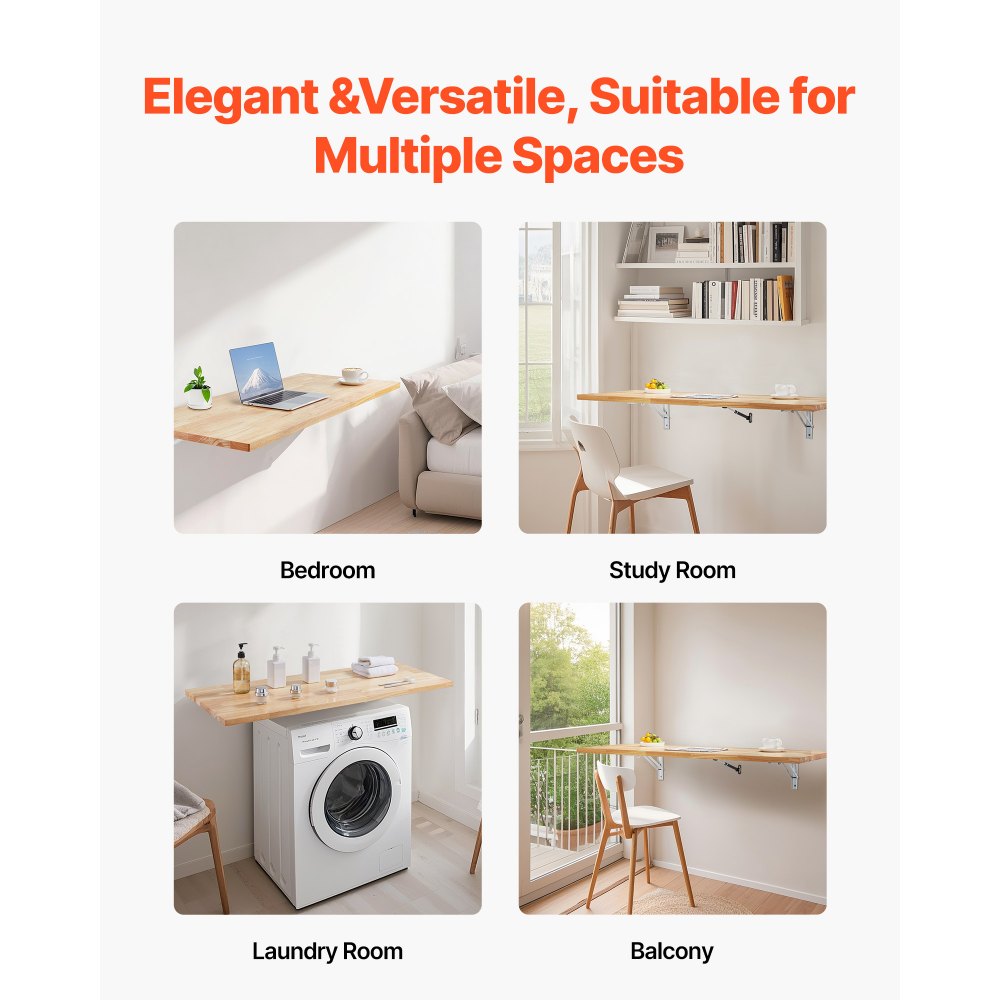Material Premium: fabricada 100% con material de madera de caucho, esta mesa plegable montada en la pared cumple con los estándares integrales de emisiones ambientales, adecuada para quienes buscan una calidad de vida natural. Su diseño de esquinas redondeadas reduce los riesgos potenciales de colisiones, mejorando la seguridad para usted y su familia.