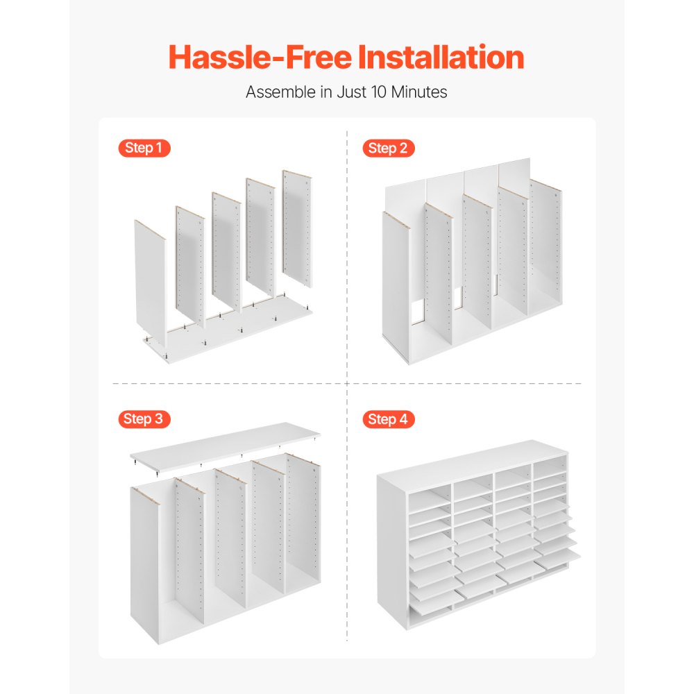 Almacenamiento personalizable: Adapte el buzón de la oficina a sus necesidades. Cada compartimento mide 234 x 282 x 56 mm y puede albergar hasta 500 hojas de papel A4. Con alturas de estantes ajustables que van desde 2,5 a 5,5 cm, puede modificar o quitar fácilmente los estantes para acomodar archivos o suministros de oficina más grandes