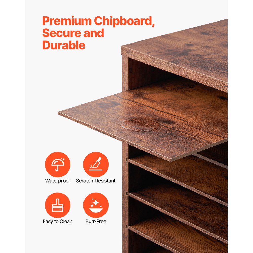 Montaje rápido: Organízate en un santiamén con el clasificador de archivos de madera. Su diseño de panel simple e instrucciones claras significan que puedes ensamblarlo en solo 10 minutos. Sin complicaciones, sin complicaciones: solo un espacio de trabajo ordenado y eficiente
