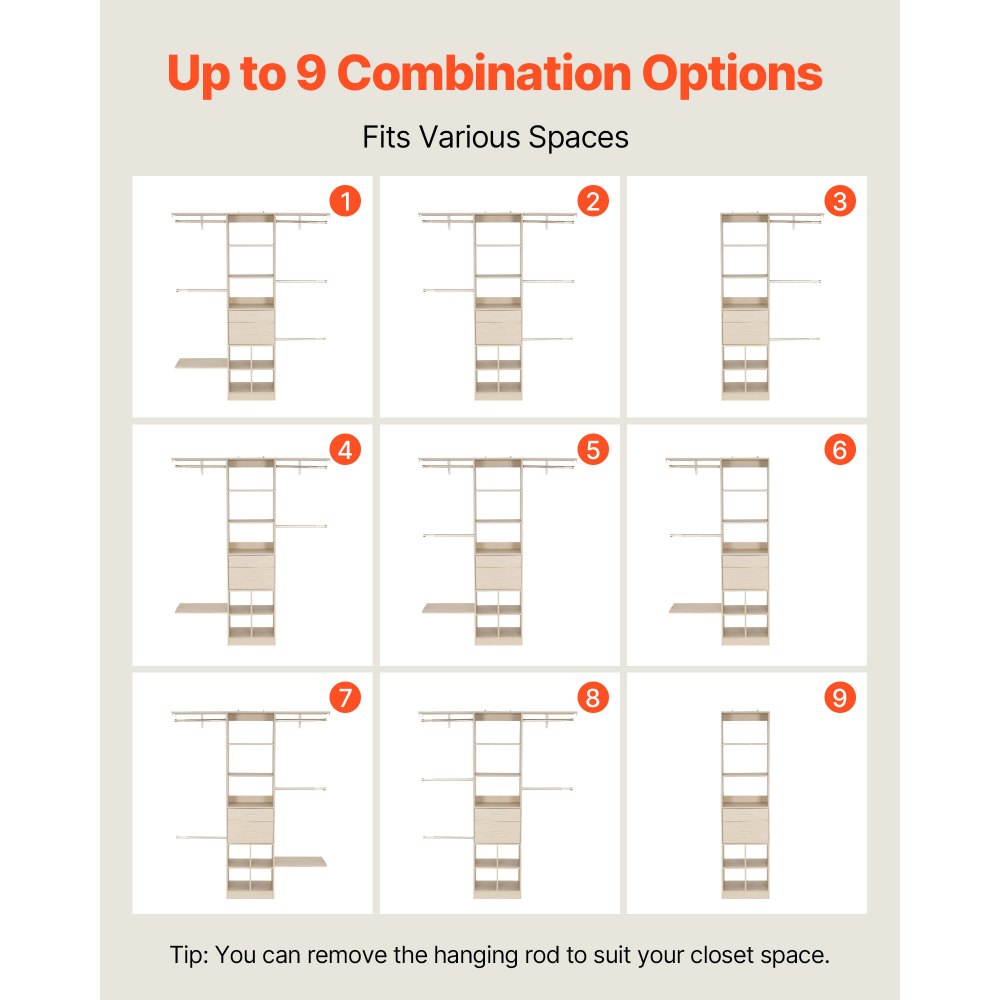 Diseño ajustable: El perchero se ajusta de 46 a 81 cm y los estantes ofrecen cinco niveles de altura en incrementos de 32 mm. Incluye dos cajones para un almacenamiento versátil