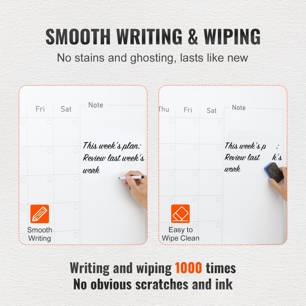Instalación en un minuto: Con los kits de fijación incluidos, puede colgar la pizarra de calendario para la pared a cualquier altura en solo segundos. El tablero de calendario de VEVOR es una opción ideal para cualquier persona que necesite una solución de programación rápida y confiable.