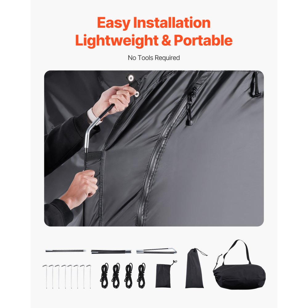 Ligero y portátil: Diseñado para ser liviano y portátil, este cobertizo para bicicletas plegable permite un rápido transporte y almacenamiento. Ya sea en su patio trasero o durante un campamento al aire libre, puede instalarlo sin esfuerzo y disfrutar de la comodidad de andar en bicicleta, satisfaciendo maravillosamente sus necesidades al aire libre