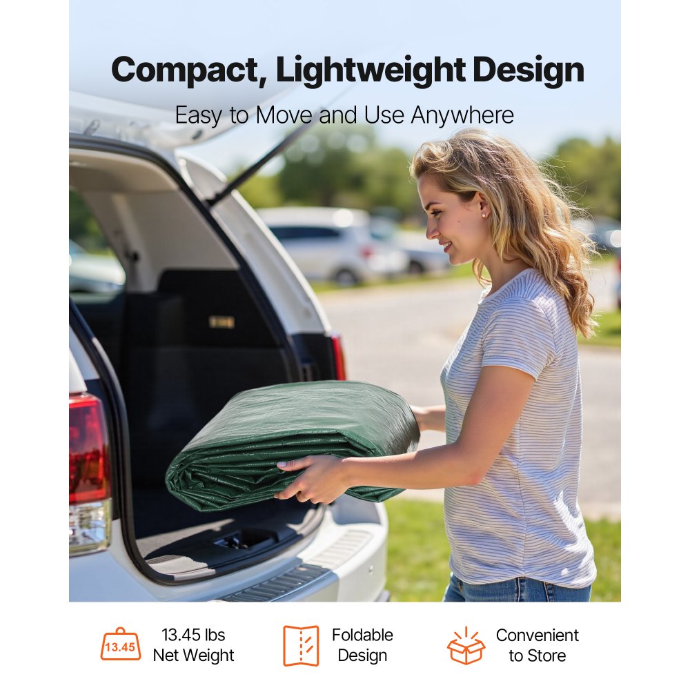 Construcción duradera: Fabricada con una capa superior de tejido de PE de 210 g y un tejido de 16x16, la lona portátil para garaje es más resistente que las lonas convencionales. Las costuras y ojales dobles termosellados garantizan un ajuste firme y seguro, resistente a desgarros y fugas