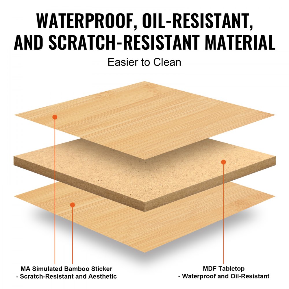 Materiales de alta calidad: la bandeja de desayuno está hecha de MDF (tablero de fibra de densidad media) con síntesis de alta temperatura y alta presión para propiedades impermeables y resistentes al moho. Luego se sella con una pegatina con un patrón de bambú. La superficie general es más lisa, fácil de limpiar y resistente a la deformación. Tiene las ventajas de ser resistente al agua, al aceite y a los arañazos, lo que facilita la limpieza.