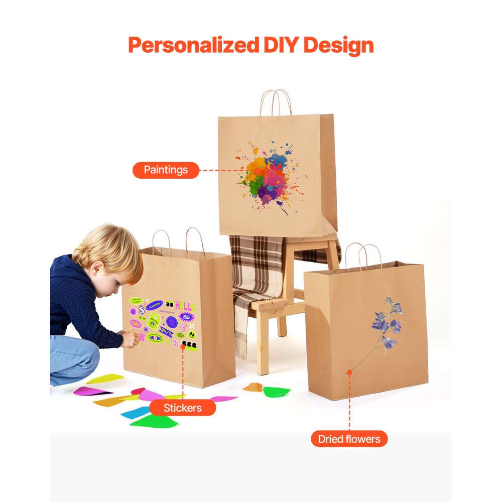 Múltiples usos: Estas bolsas de papel kraft son ideales para compras, empaquetar regalos, almacenar, etc. También se pueden personalizar con el logotipo para promociones comerciales. Se adaptan a tus diferentes necesidades