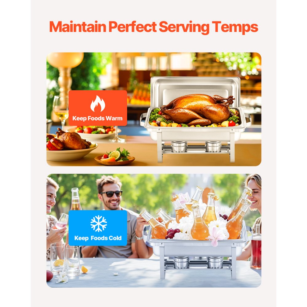 Mantenga su comida a la temperatura adecuada: Con este juego puede mantener su comida a la temperatura ideal para servir. Puede mantener su comida caliente o fría, lo que lo hace ideal para una variedad de alimentos durante su evento