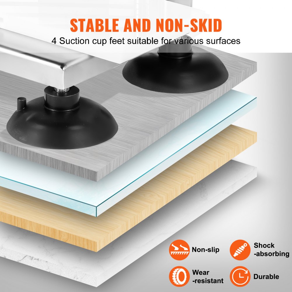 Alta estabilidad: Con un cuerpo resistente de acero inoxidable y 4 patas de succión, este cortador de tomates comercial puede caber en varias superficies de mesa, protegiendo sus encimeras y asegurando que el dispositivo permanezca en su lugar para operaciones de corte más suaves.