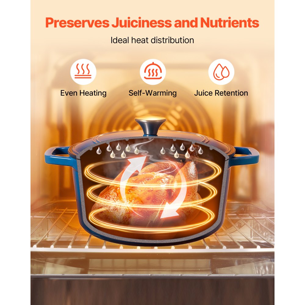 Distribución uniforme del calor: Esta olla holandesa, fabricada en hierro fundido de alta calidad, ofrece una excelente conducción y retención del calor. Su tapa gruesa y hermética garantiza altas temperaturas y una distribución uniforme del calor en toda la olla
