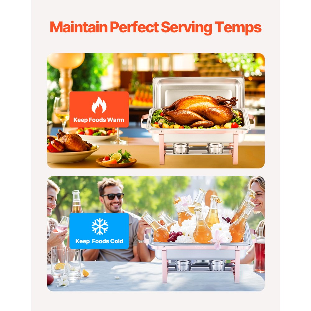 Mantenga la temperatura de sus alimentos: Mantenga sus alimentos a la temperatura ideal para servir con este set. Está diseñado para mantener tu comida caliente o fría, lo que lo hace ideal para una variedad de platos durante tu evento