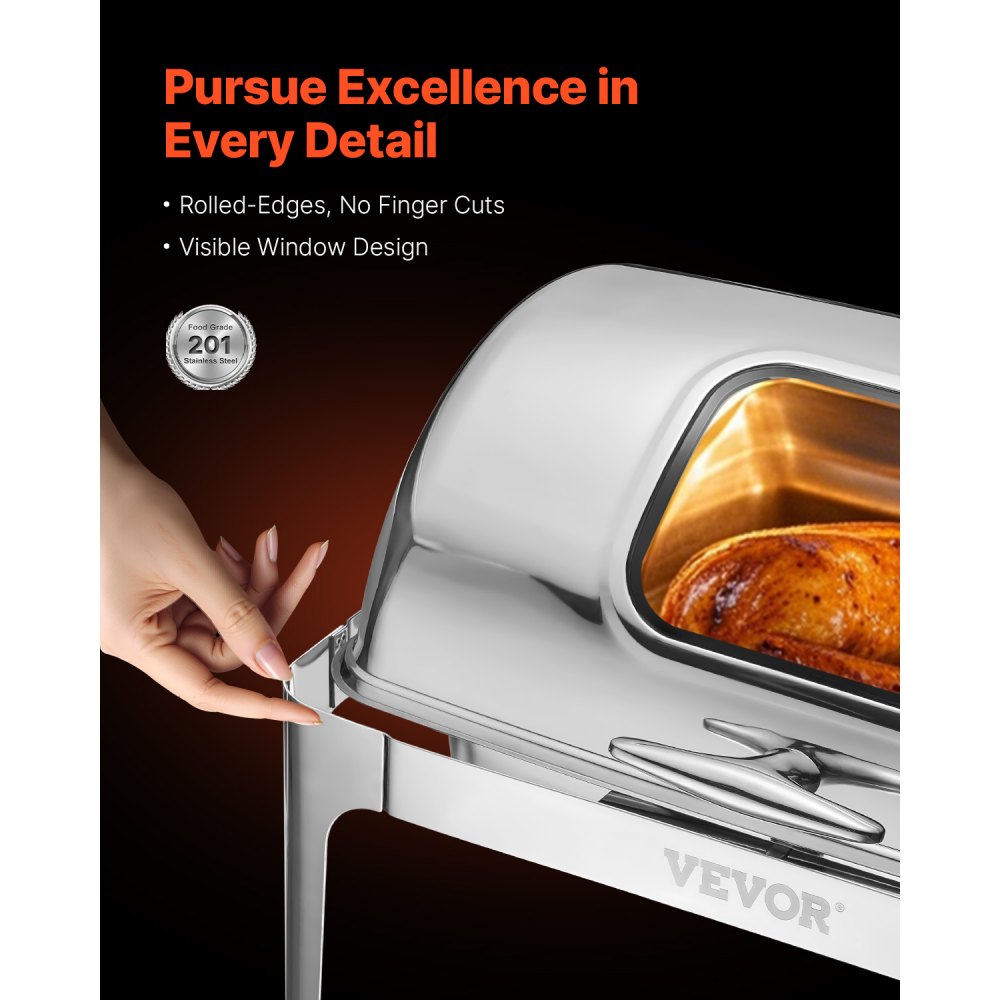 Mantenga la temperatura de su comida: Mantenga su comida a la temperatura ideal para servir con este chafer de buffet. Está diseñado para mantener el calor de tu comida o mantenerla fría, lo que lo hace ideal para una variedad de platos durante tu evento